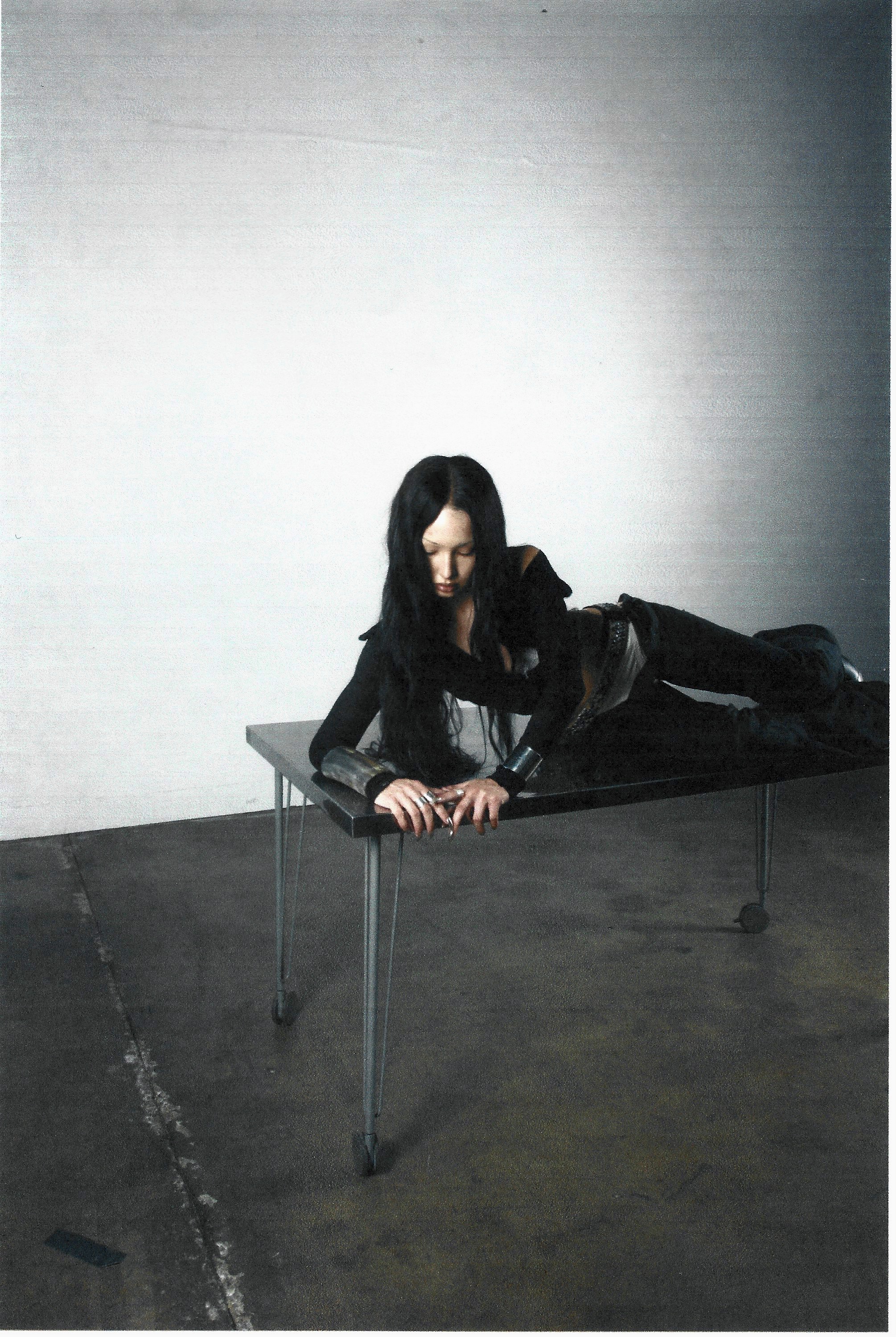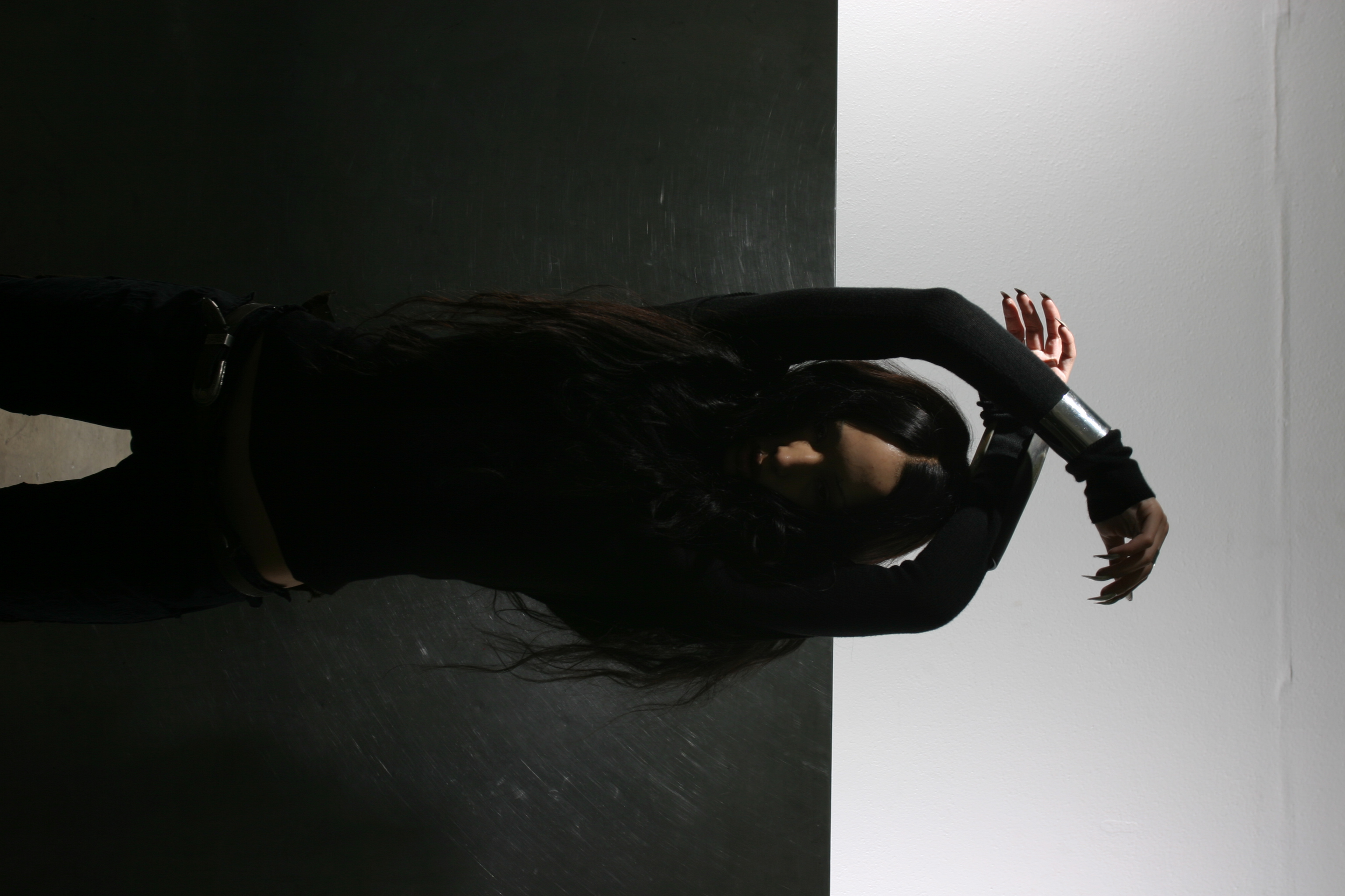 Asphyxia documents the genesis of Cen's "Skin Series" [ draped lambskin skirt with 15" braids using their hair] as well as their "Body Tablets" [ steel, resin, and their hair]. Projects addressing depersonalization and seeing the body as source material.